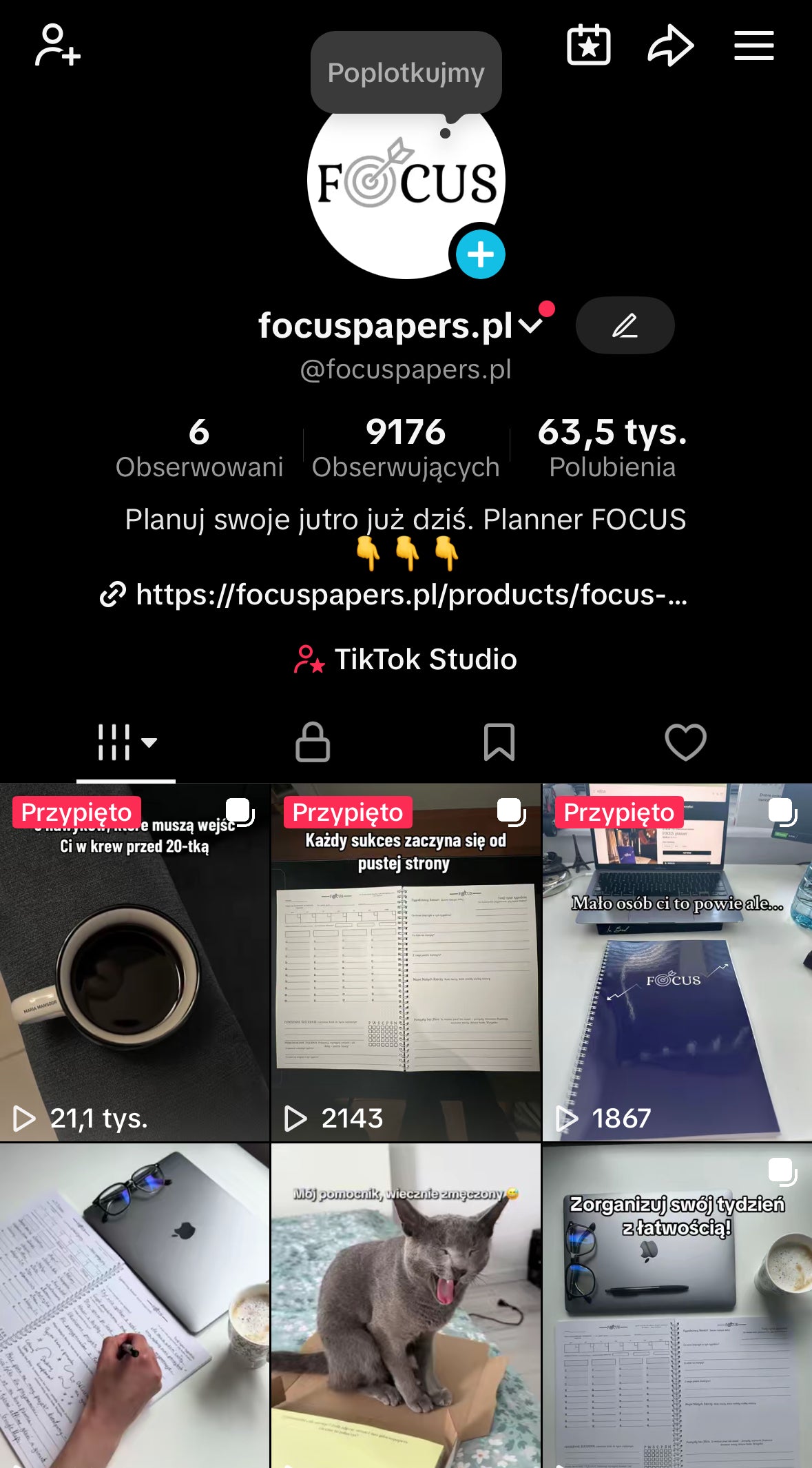 "Ponad 9000 osób już inspiruje się naszymi wskazówkami, trikami i codzienną dawką motywacji do efektywnego planowania! Zobacz, jak planner FOCUS pomaga w realnym życiu, znajdź inspiracje do organizacji czasu i dołącz do grona osób, które zmieniają swoje życie. Kliknij i daj się wciągnąć w świat produktywności!"